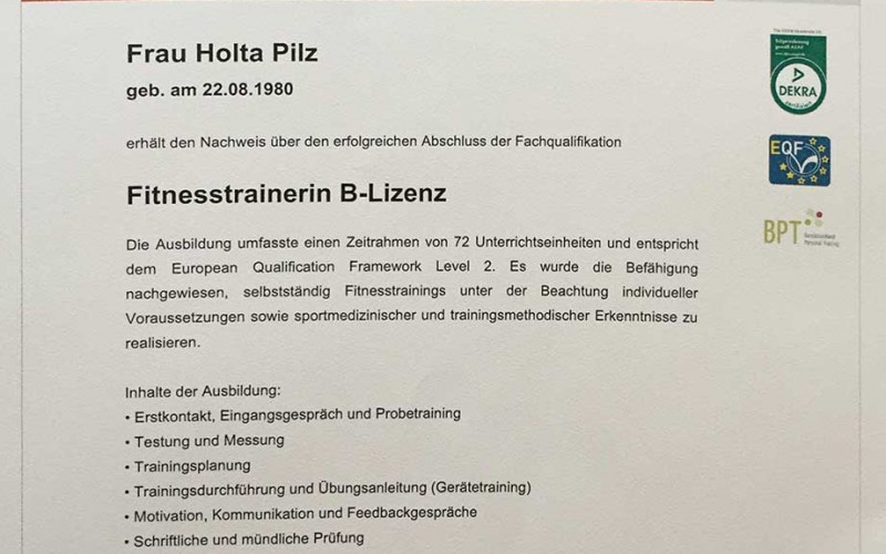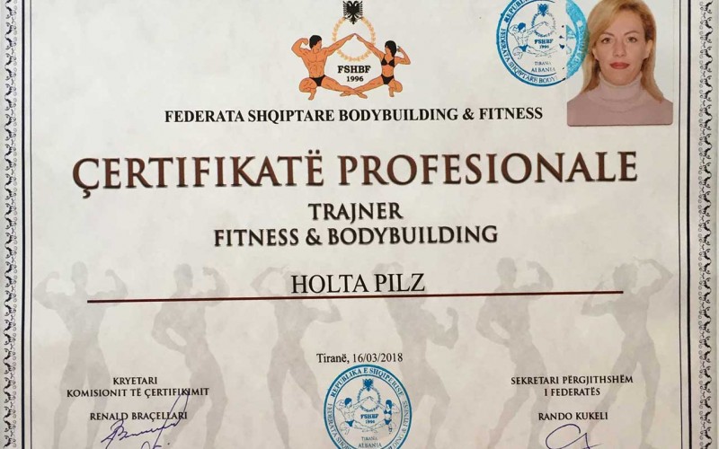 Që nga ajo kohë ajo ka licencën si trajnre fitnesi dhe trajnere personale, si dhe atlete fitnesi dhe bodybuilding.